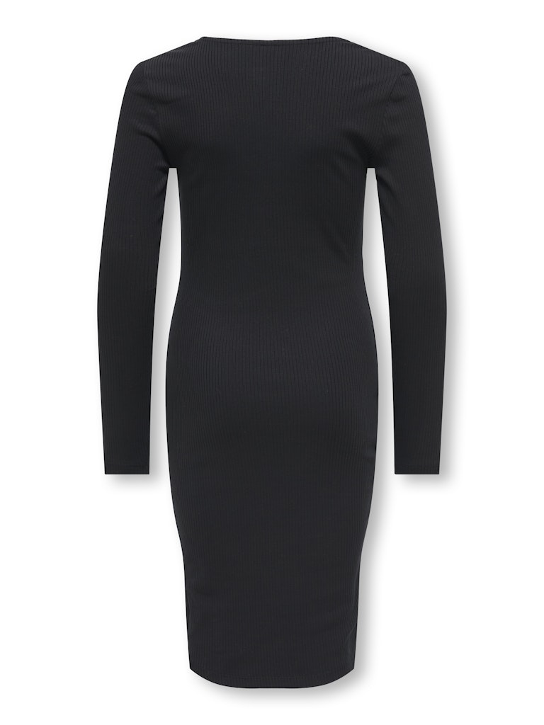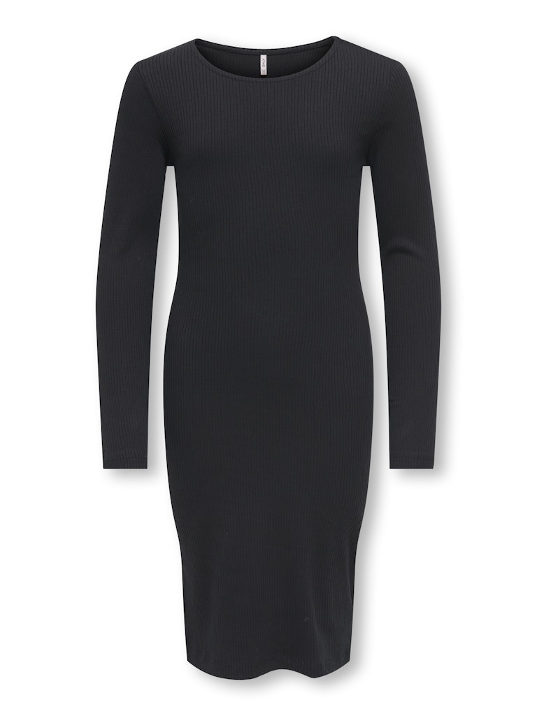 Tight ribbad klänning till barn och ungdomar från Kids Only med rund halsringning, långa ärmar och en liten slits på höger sida.