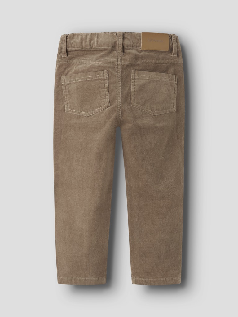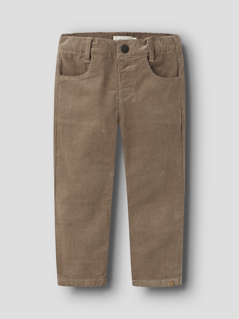 Mjuka och stretchiga byxor till barn i babycord från Lil'Atelier med justerbar resår i midjan och tryckknapp.