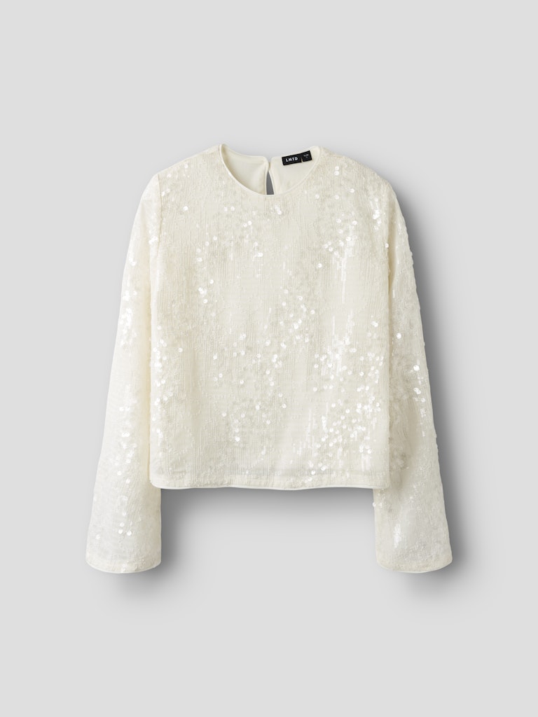 Festlig långärmad paljettopp till teens från LMTD med rund halsringning, knappknäppning bak och ett tunt foder inuti för att inga paljetter ska klia.