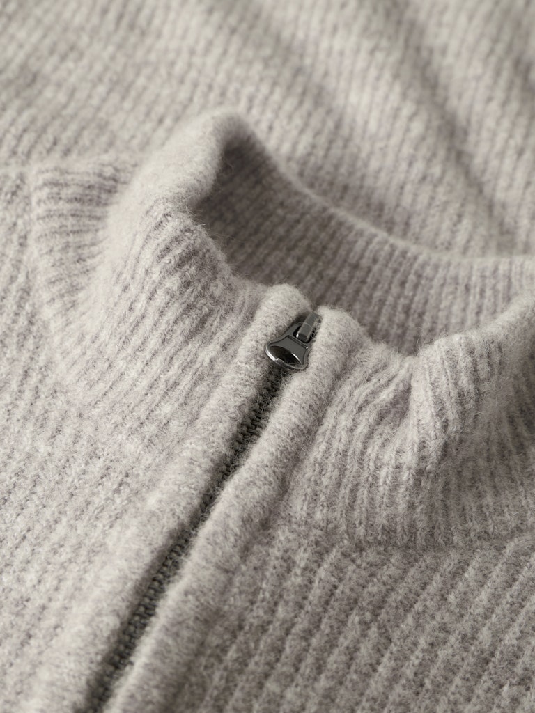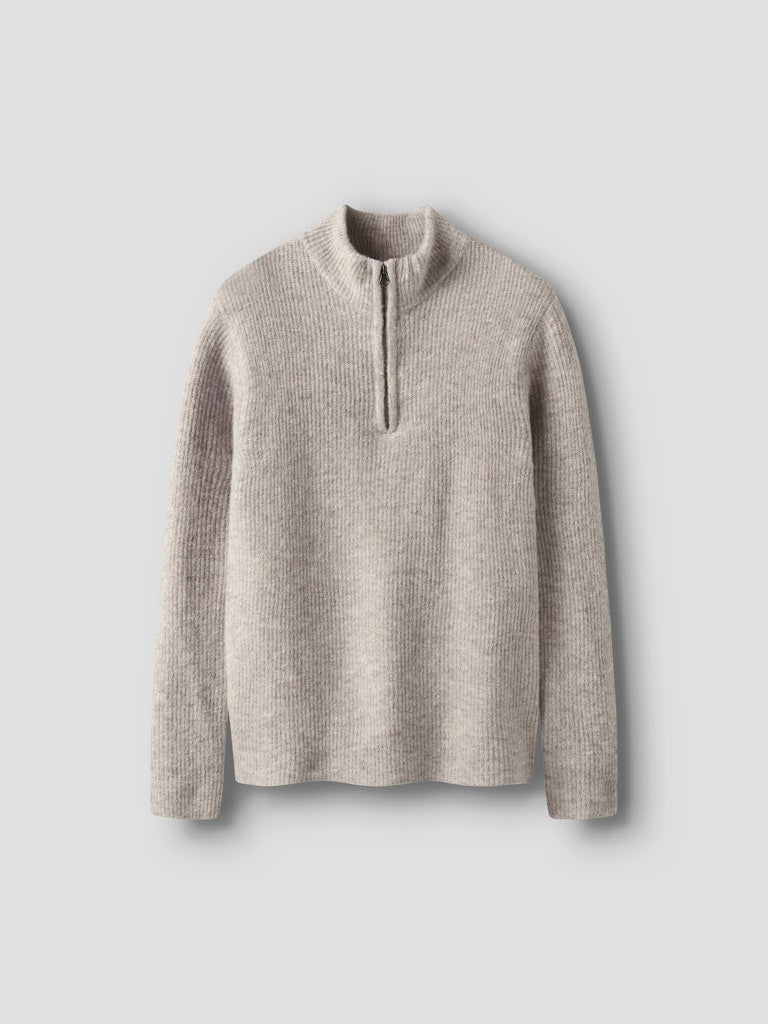 Snygg ribbastickad tröja till teens från LMTD med hög hals och en kort dragkedja samt ribbade muddar i midjan och ärmsluten.