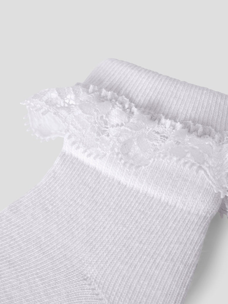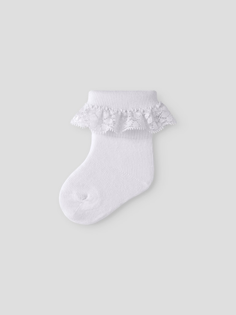 Söt strumpa till små bebisar från Name it med mjuk resår och nedvikbar spetskant i skaftet som gör att de sitter bra på de små fötterna.