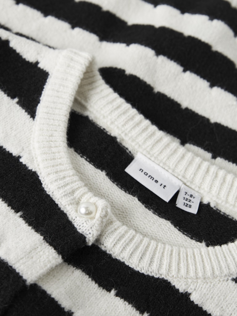 Snygg randig stickad kofta till barn och ungdomar från Name it med rund halsringning och pärlemoknappar.