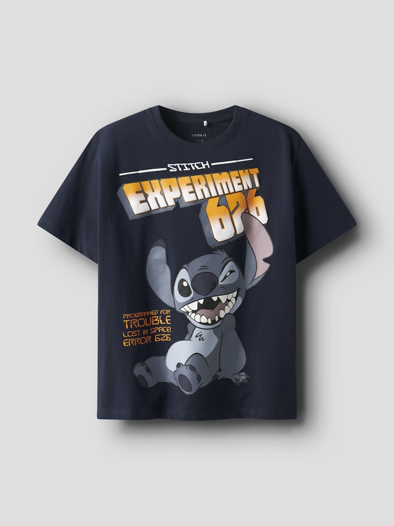 Häftig t-shirt till barn från Name it med rund halsringning och ett stort Stitchtryck mitt på.