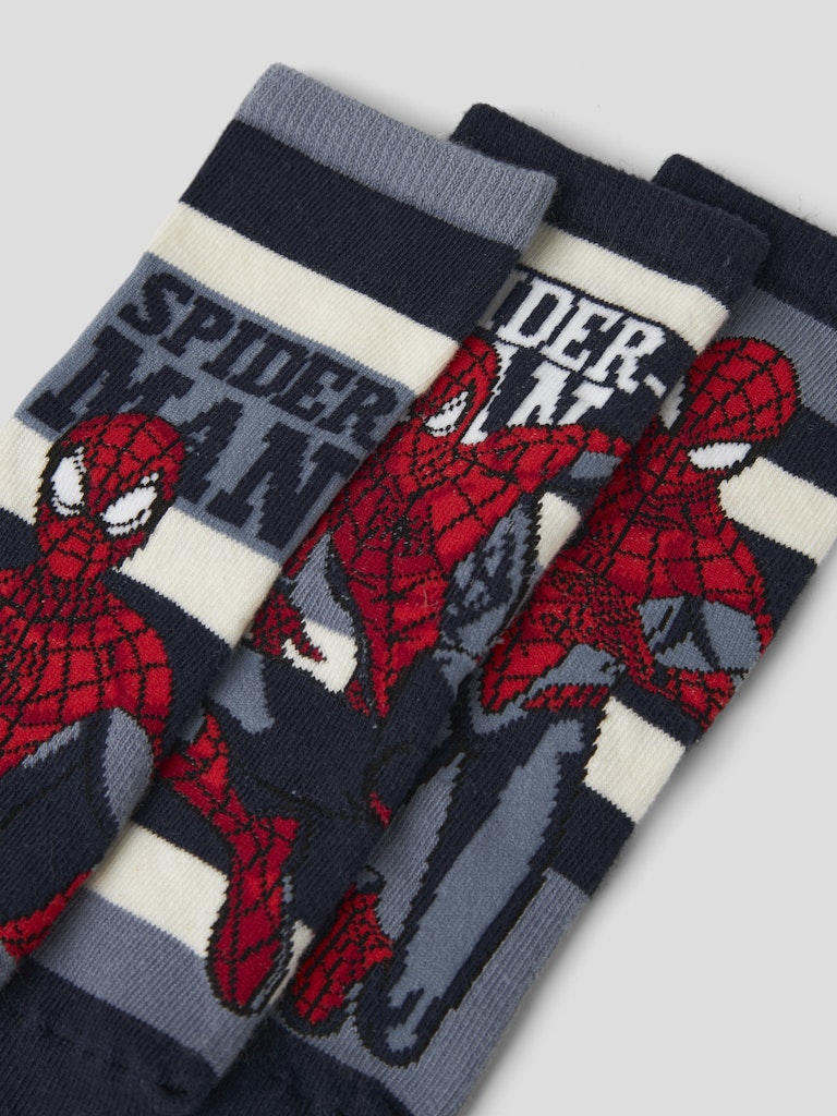 Coola blockrandiga Spidermanstrumpor till barn från Name it med mjuk resår. Säljs i 3-pack med tre olika Spidermanmönster