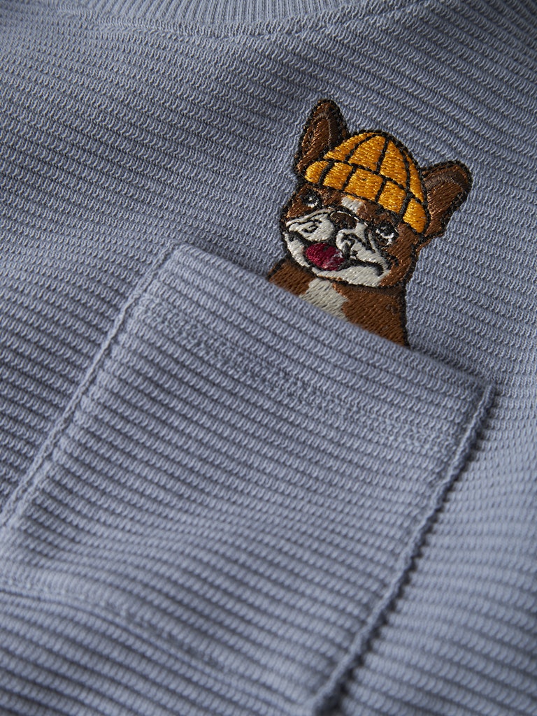Tuff långärmad tröja till barn i ekologisk bomull från Name it med rund hansringning, bröstficka med en liten hund dom sticker upp.