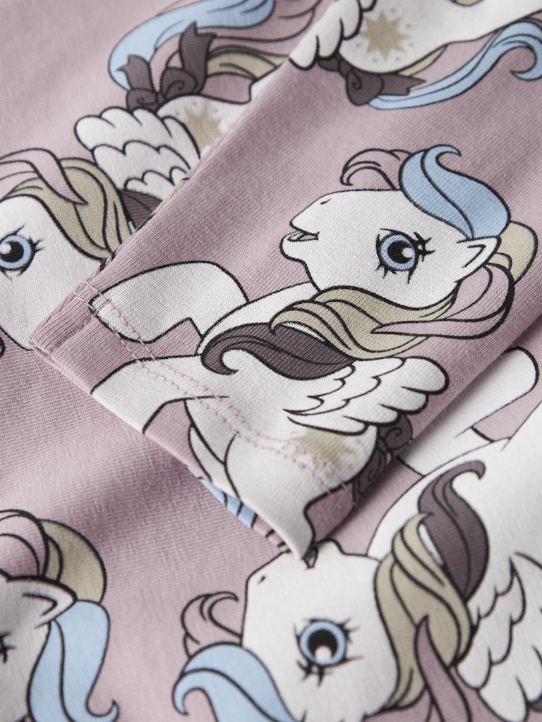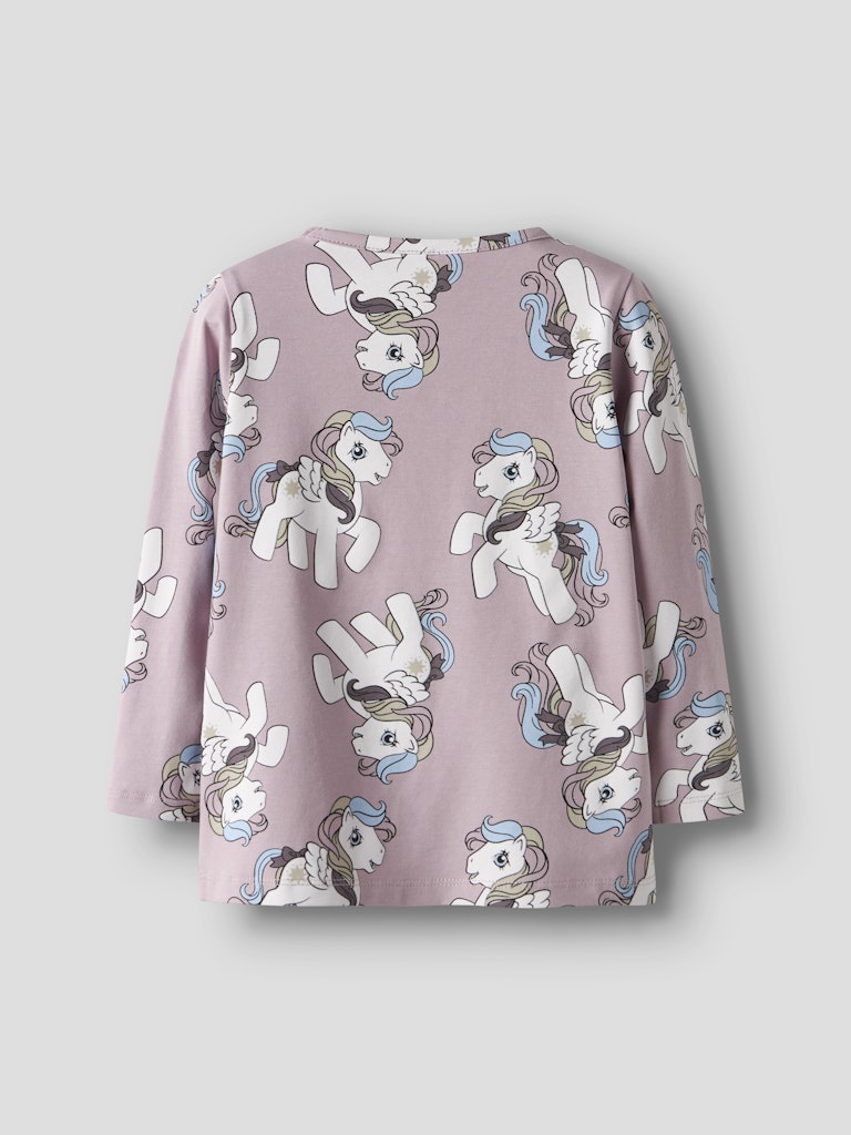 Söt långärmad topp till barn i ekologisk bomull från Name it med rund halsringning och ett "allover print" med populära My Little Pony.