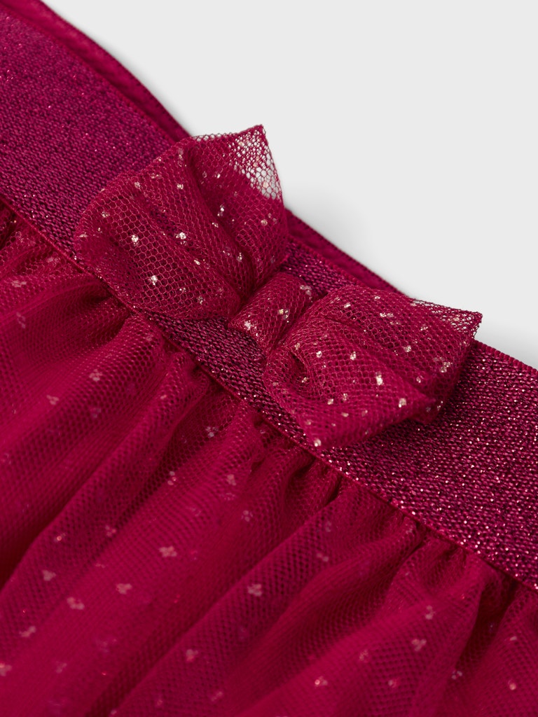 Söt prickig tyllkjol till barn från Name it med glitterresår och en liten rosett i midjan samt ett tunt foder.